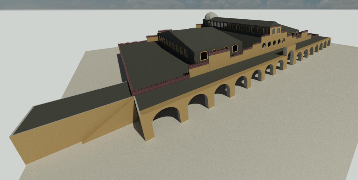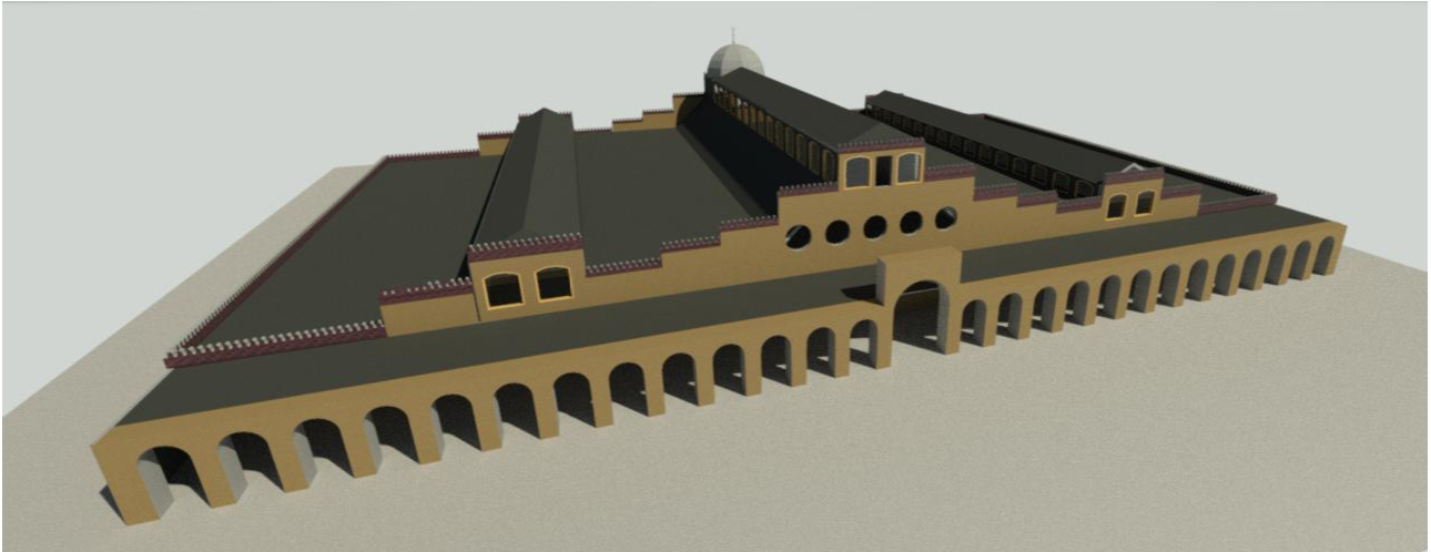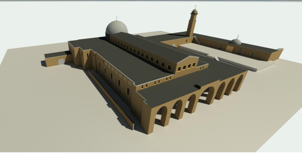 رسم تخيلي للجامع في الفترة الاموية والعباسية