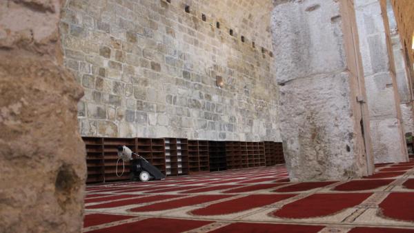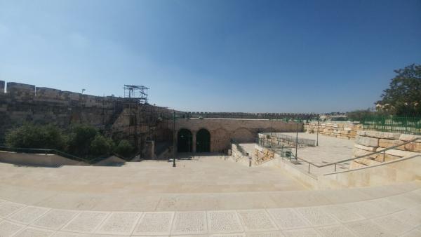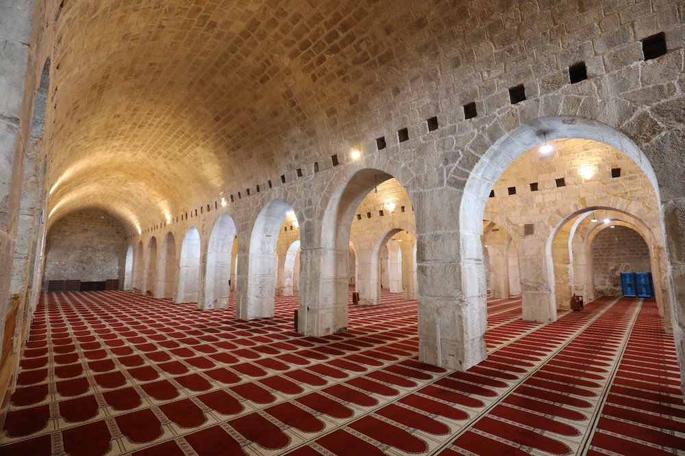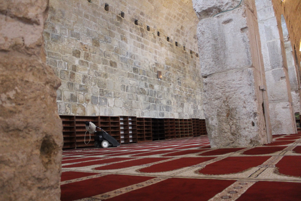 المصلى عبر العصور: مر المصلى منذ نشأته بعدة مراحل حيث يعتقد أنه كان يستخدم سابقا كمخازن للمسجد وممرا للباب الثلاثي ، وكان يسمى بالتسوية الشرقية حيث هدف بنائه لتسوية ارضية الجامع القبلي ولم يكن لبناء مصلى للصلاة ، جاءت الفترة الصليبة وغيرت معالم المكان فتم استخدامه كاسطبلات للخيول و يدل على ذلك وجود حلقات في الاعمدة وهي مكان ربط الخيول وسمي المكان في تلك الفترة باسطبلات سليمان . عندما تم التحرير الصلاحي أعيد استخدام جزء من المصلى كمخازن وجزء اخر كخلوات للمتصوفة، ويذكر انه كان يوجد سلم يصل بين الباب الثلاثي والباب المزدوج ، تم اهمال المكان بالفترة العثمانية وخلق بعض الاساطير والاوهام حول المكان مما جعل الناس تتخوف من الاقتراب او زيارة المكان وكأنه اندثر تحت التراب والغبار ولكن في الفترة الحديثة بتحديد عام 1996م تم اعادة تأهيل المكان وافتتاحه واطلاق عليه مسمى المصلى المرواني .