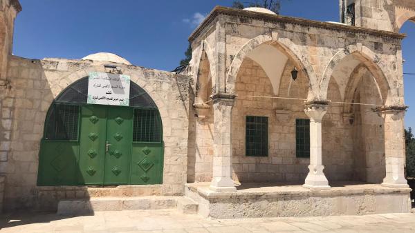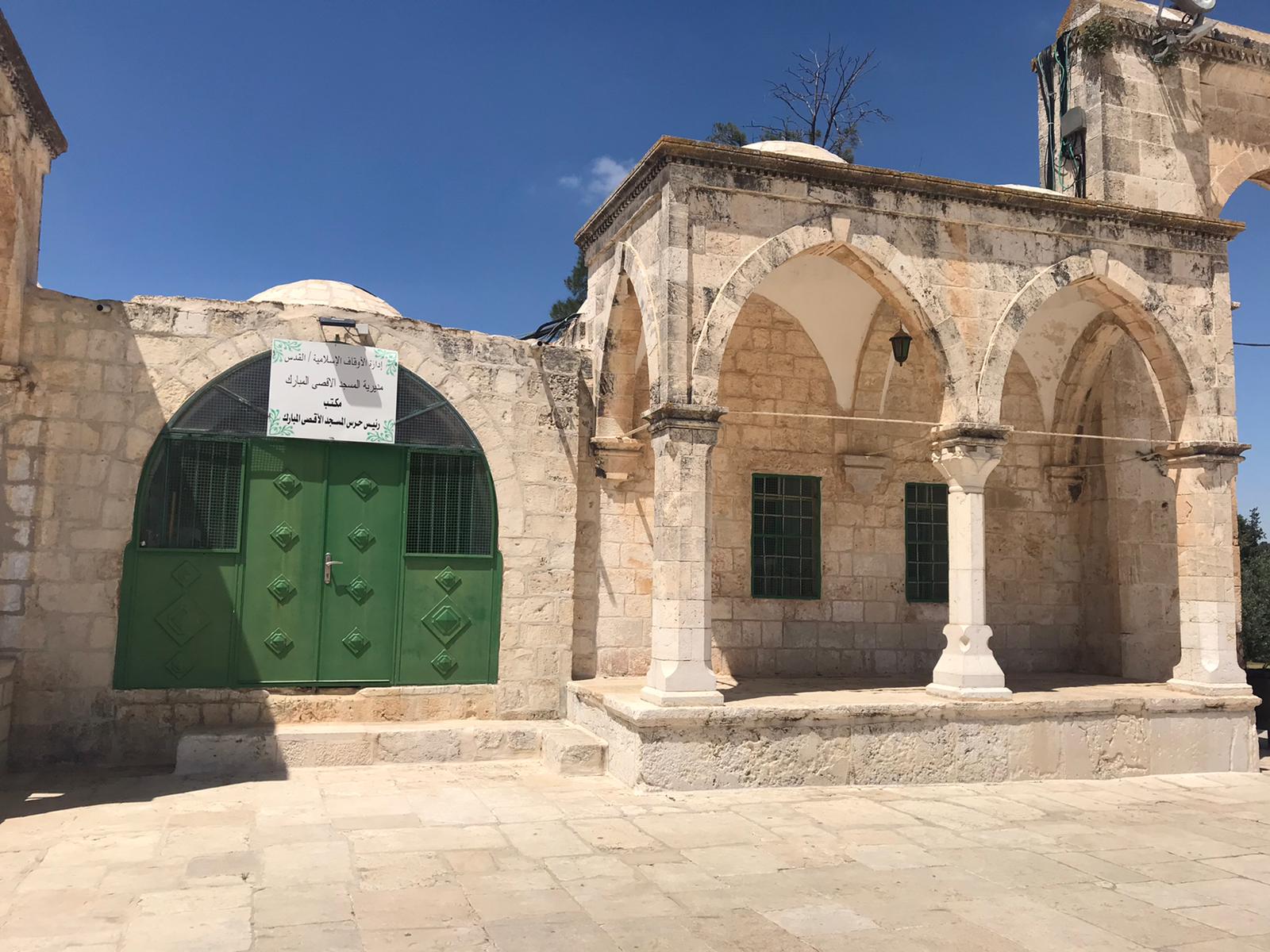 العلوي يتكون من غرفة صغيرة تؤدي إلى الغرفة الكبيرة تستخدم اليوم غرفة لرئيس حرس المسجد الأقصى