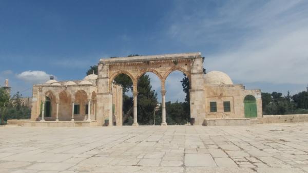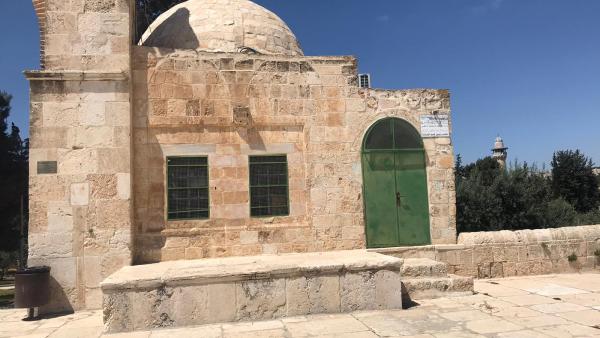 في الجهة الشمالية لصحن قبة الصخرة ملاصقة من الشرق للبائكة التي تؤدي إلى باب حطة