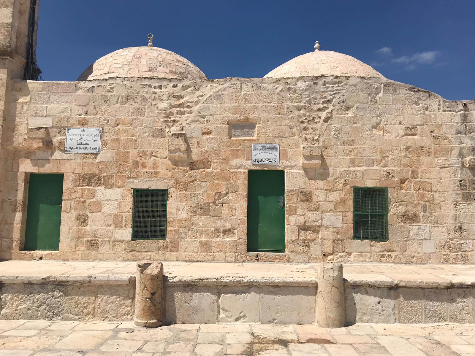 العلوي يوجد به غرفتان الشرقية تستخدم كغرفة للحارسات والغربية كمكتب لأئمة المسجد الأقصى