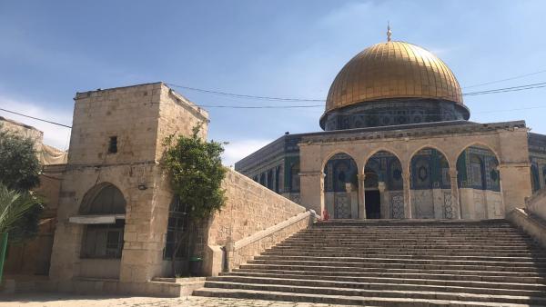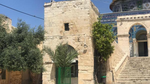 يقع في الجهة الغربية لصحن الصخرة لصق البائكة الغربية من الشمال