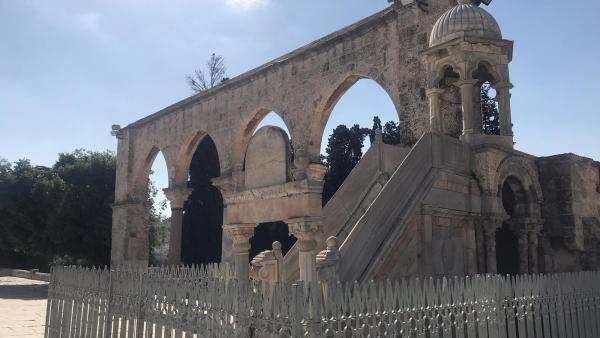 بداية كان المنبر عبارة عن قبة الميزان وفي الفترة المملوكية تم انشاء درج وبذلك اصبح منبرا صيفيا