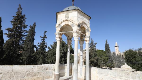 الموقع الزاوية الشمالية الغربية من قبة الصخرة التاريخ ايوبي - مملوكي وتم تجديدها بالفترة العثمانية التسمية نسبة إلى زاوية الخضر التي تقع تحت القُبّة وصف القبة: عبارة عن قبة صغيرة منشأة على مسطبة، وتقوم على ستّة أعمدة رخامية، ولها محراب أرضي