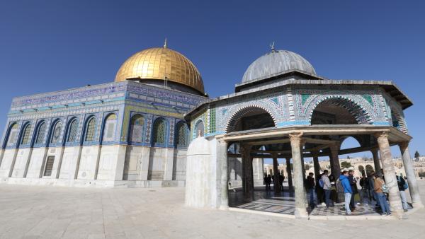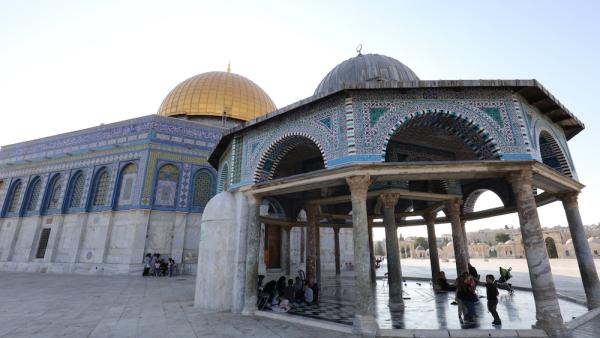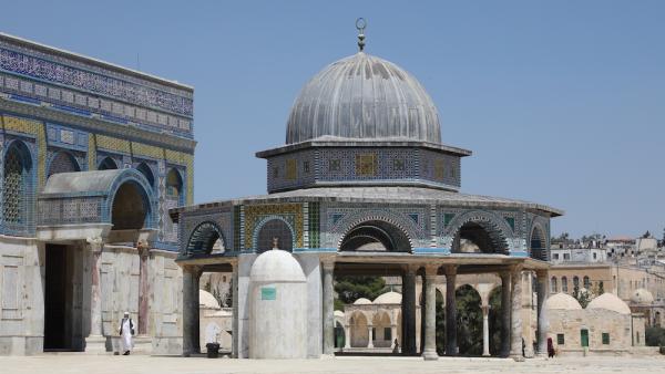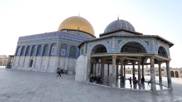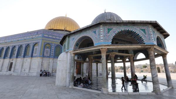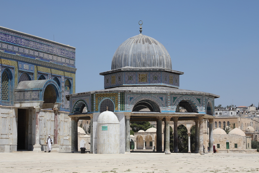 شرق قُبّة الصَّخرة. تقع القبة بمنتصف المسجد الأقصى المبارك طولا وعرضًا.