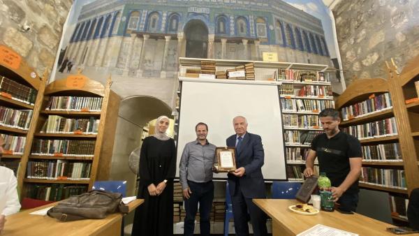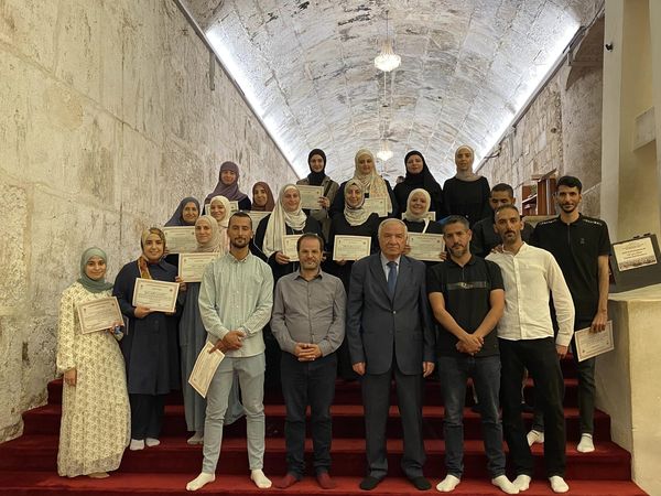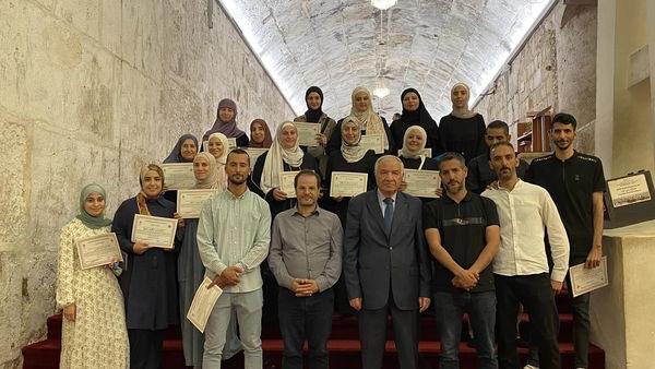تحت رعاية عطوفة الشيخ عزام الخطيب مدير عام دائرة الأوقاف الإسلامية وشؤون المسجد الأقصى المبارك اختتمت مكتبة المسجد الأقصى المبارك بالتعاون مع مؤسسة خزائن اليوم وبحضور مدير الموارد البشرية والشؤون الإدارية في الاوقاف الإسلامية السيد كريم الكركي، ومدير العلاقات العامة والإعلام السيد محمد الأشهب، الدورة التدريبية "أرشيف المكتبة" في الأقصى القديم (المكتبة الختنية)، وتوزيع الشهادات على المشاركين والمشاركات من موظفي وموظفات الأقسام الحيوية المرتبطة بالأرشفة وحفظ الكتب والمخطوطات والملفات في المسجد الأقصى المبارك.