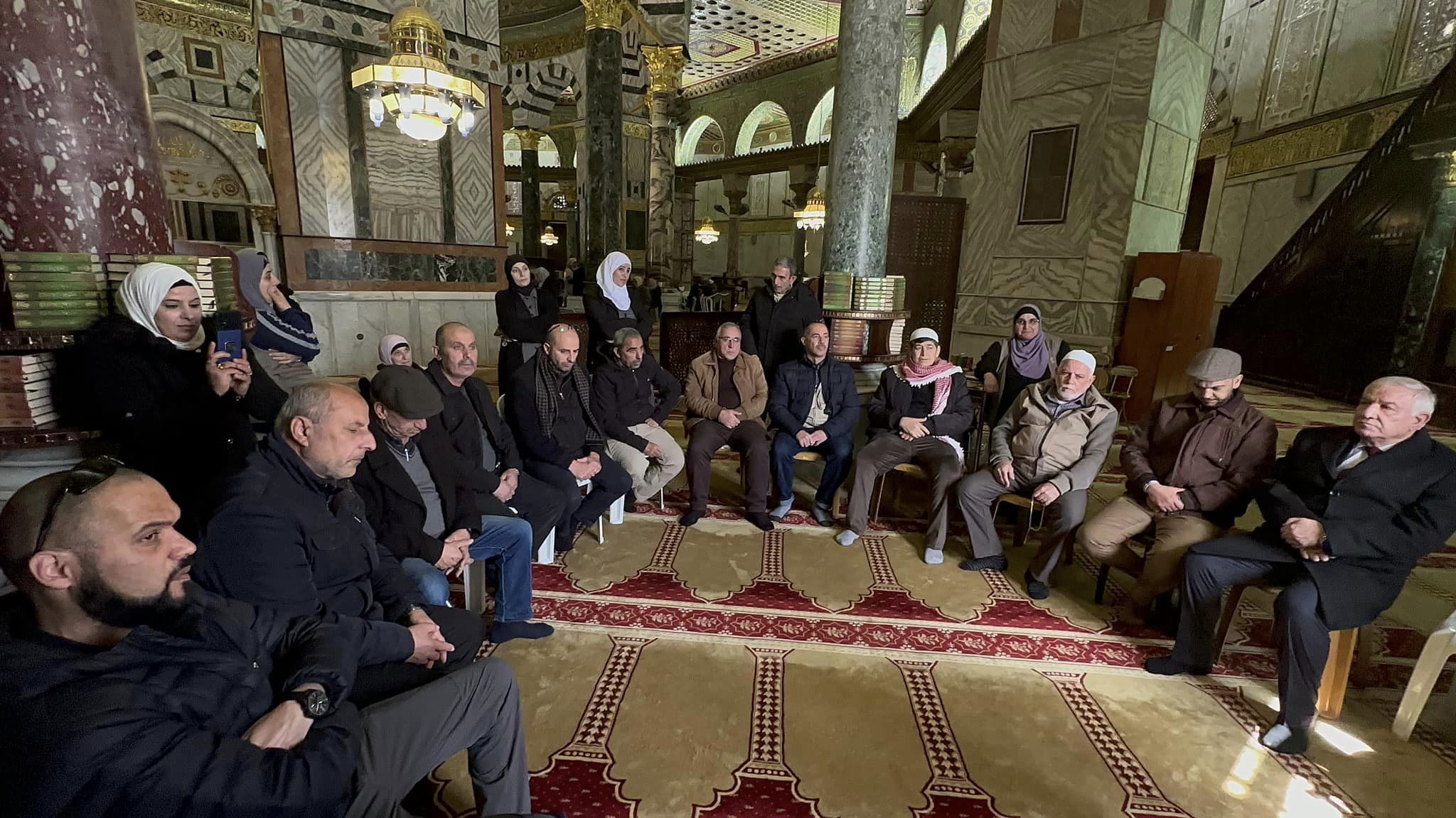 جانب من تكريم سادن المسجد الأقصى المبارك السيد جواد المحتسب بعد احالته على التقاعد بعد أكثر من 47 عاماً في خدمة المسجد الأقصى المبارك، وذلك بحضور عطوفة الشيخ عزام الخطيب مدير عام دائرة الأوقاف الإسلامية وشؤون المسجد الأقصى المبارك وفضيلة الشيخ عمر الكسواني مدير المسجد الأقصى المبارك والسيد عبد الرحيم الأنصاري رئيس قسم السدنة، ومجموعة من مسؤولي وموظفي الأوقاف الاسلامية وموظفي قسم سدنة المسجد الأقصى المبارك.