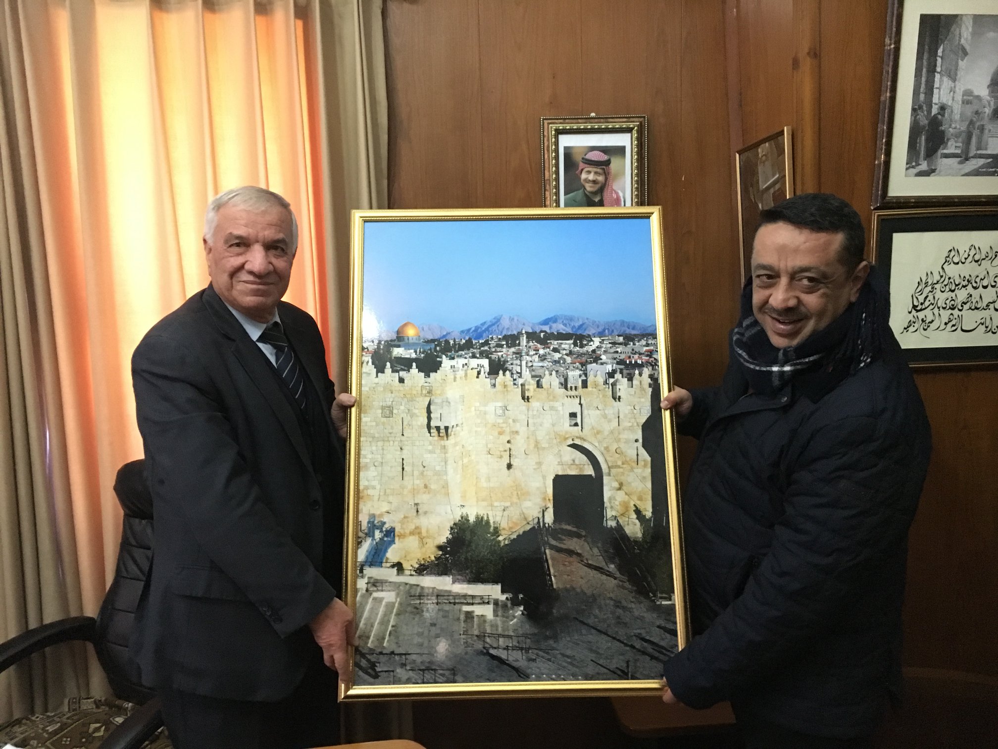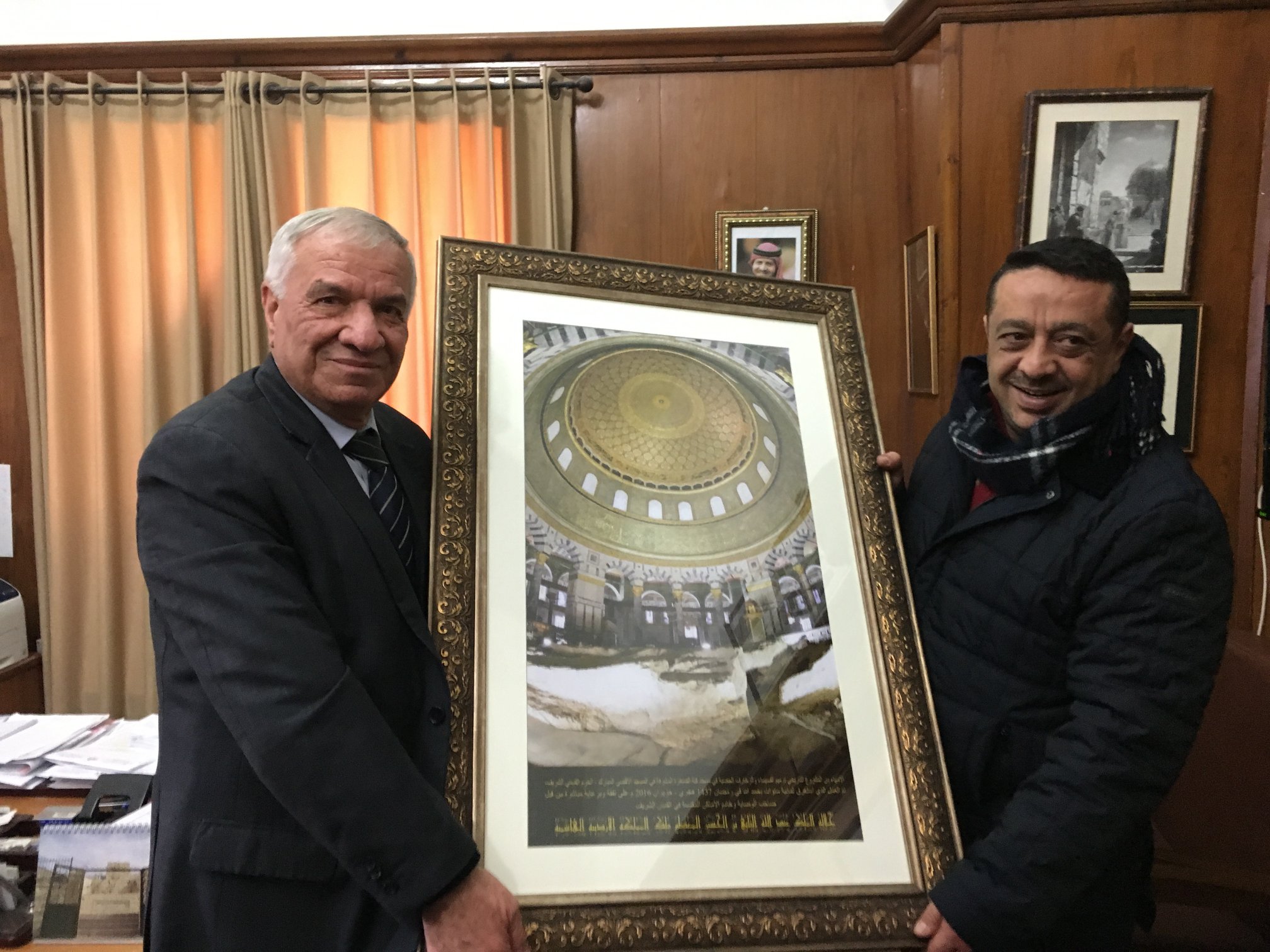 جانب من تكريم عطوفة الشيخ عزام الخطيب مدير عام دائرة الأوقاف الإسلامية وشؤون المسجد الأقصى المبارك لعطوفة أمين عام رئاسة الوزراء الأردنية السيد سامي داوود والوفد لمرافق خلال زيارتهم لدائرة الأوقاف الإسلامية وشؤون المسجد الأقصى المبارك اليوم.