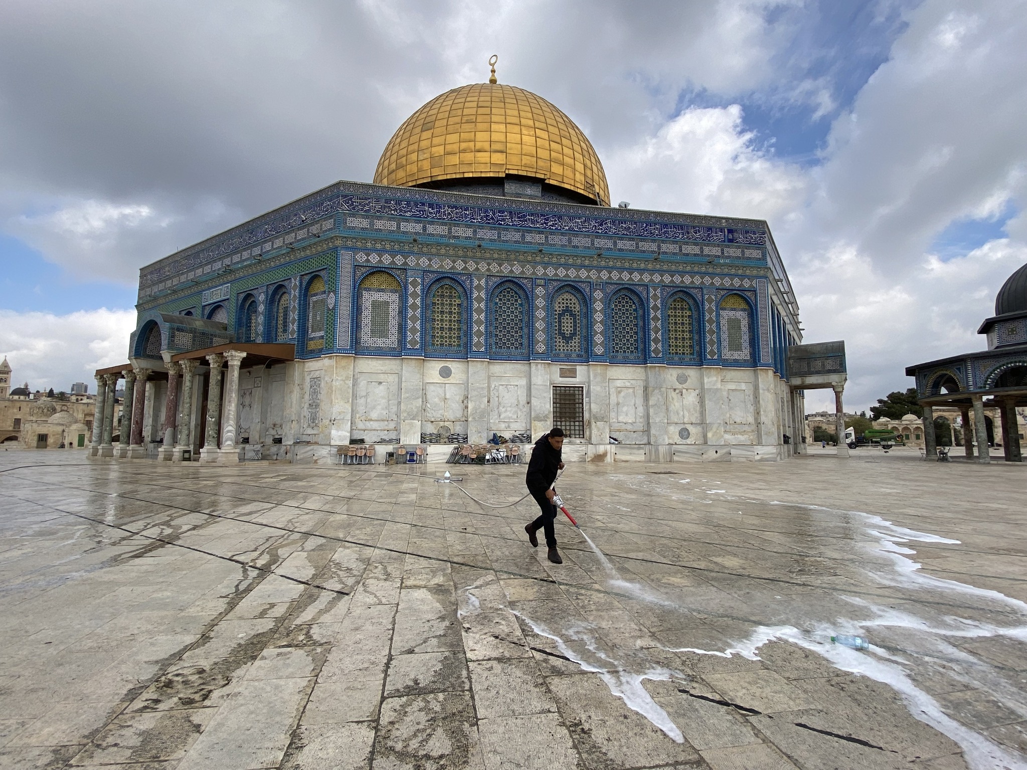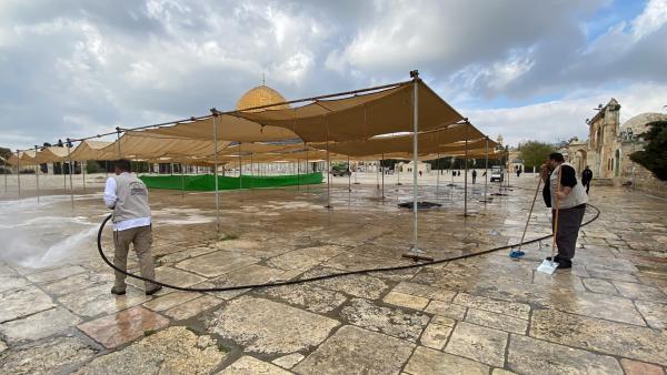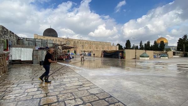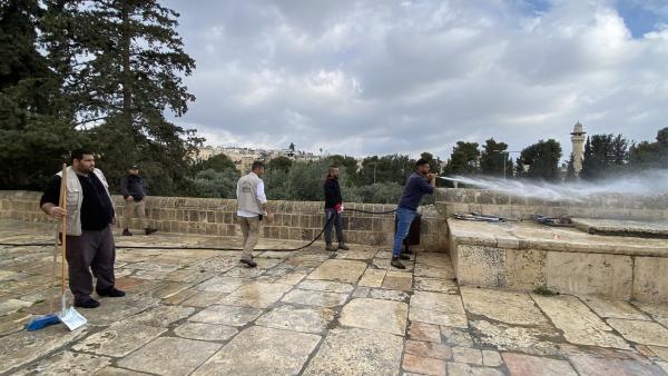 تنظيف باحات المسجد الأقصى المبارك لاستقبال عيد الفطر