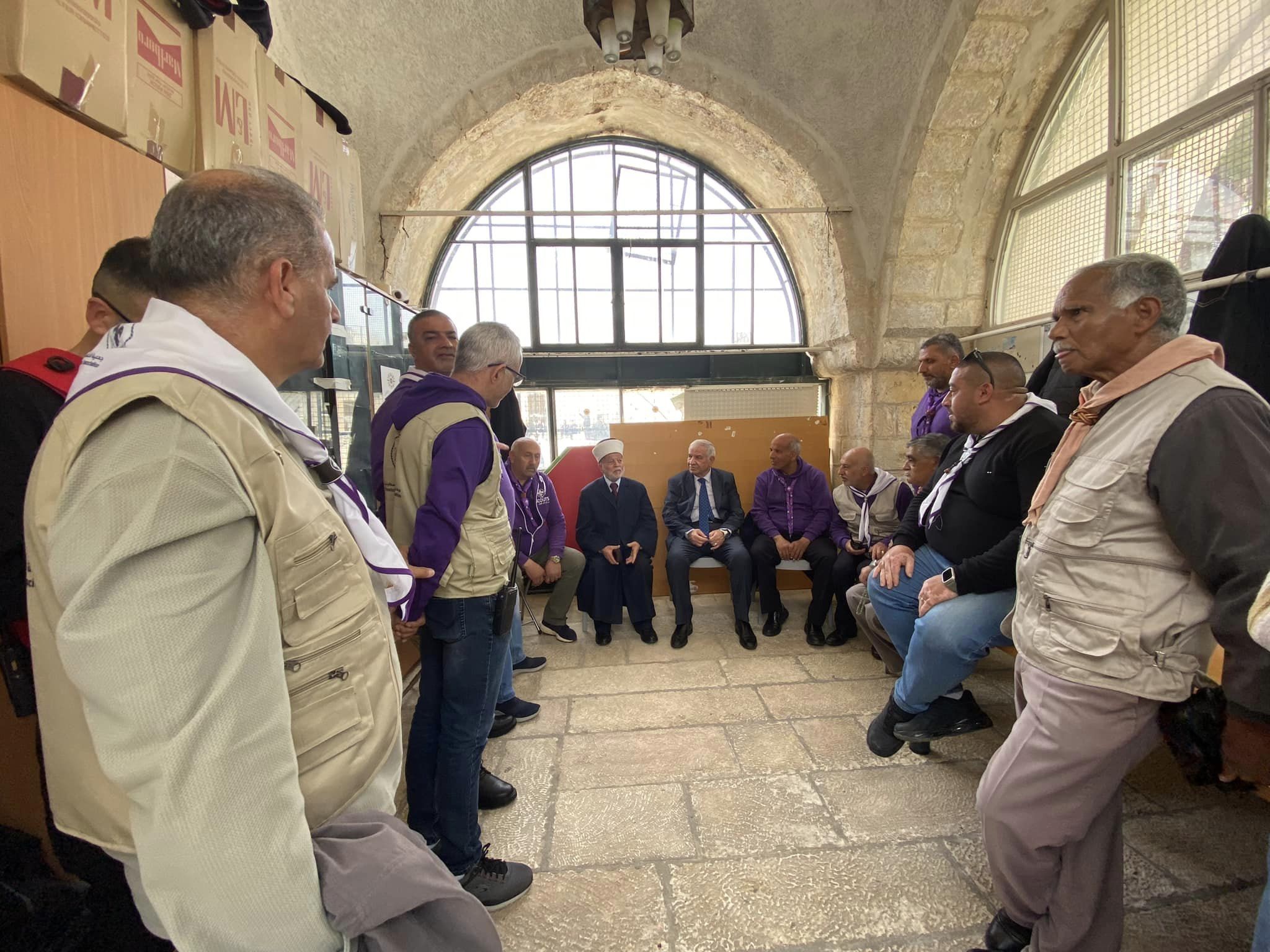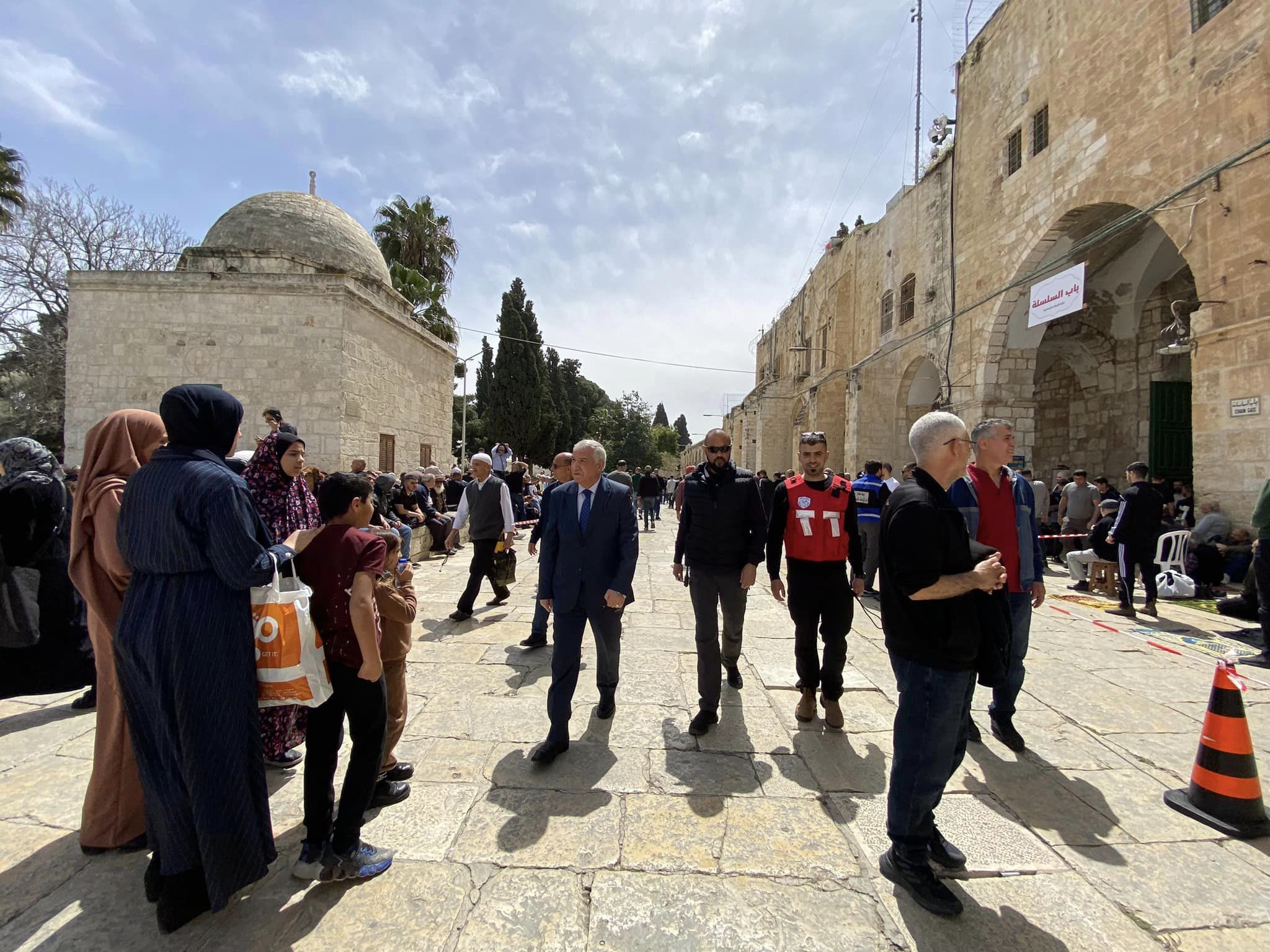 جولة تفقدية لعطوفة الشيخ عزام الخطيب مدير عام دائرة الاوقاف الإسلامية وشؤون المسجد الأقصى المبارك وبحضور سماحة الشيخ محمد حسين المفتي العام، والسيد عصام الزاغة مسؤول حرس المسجد الأقصى المبارك، والسيد عبدالله ابو طالب رئيس قسم الحراسة، والسيد نزيه سلامة رئيس قسم الإطفاء، في الجمعة الثالثة من رمضان في المسجد الأقصى المبارك.