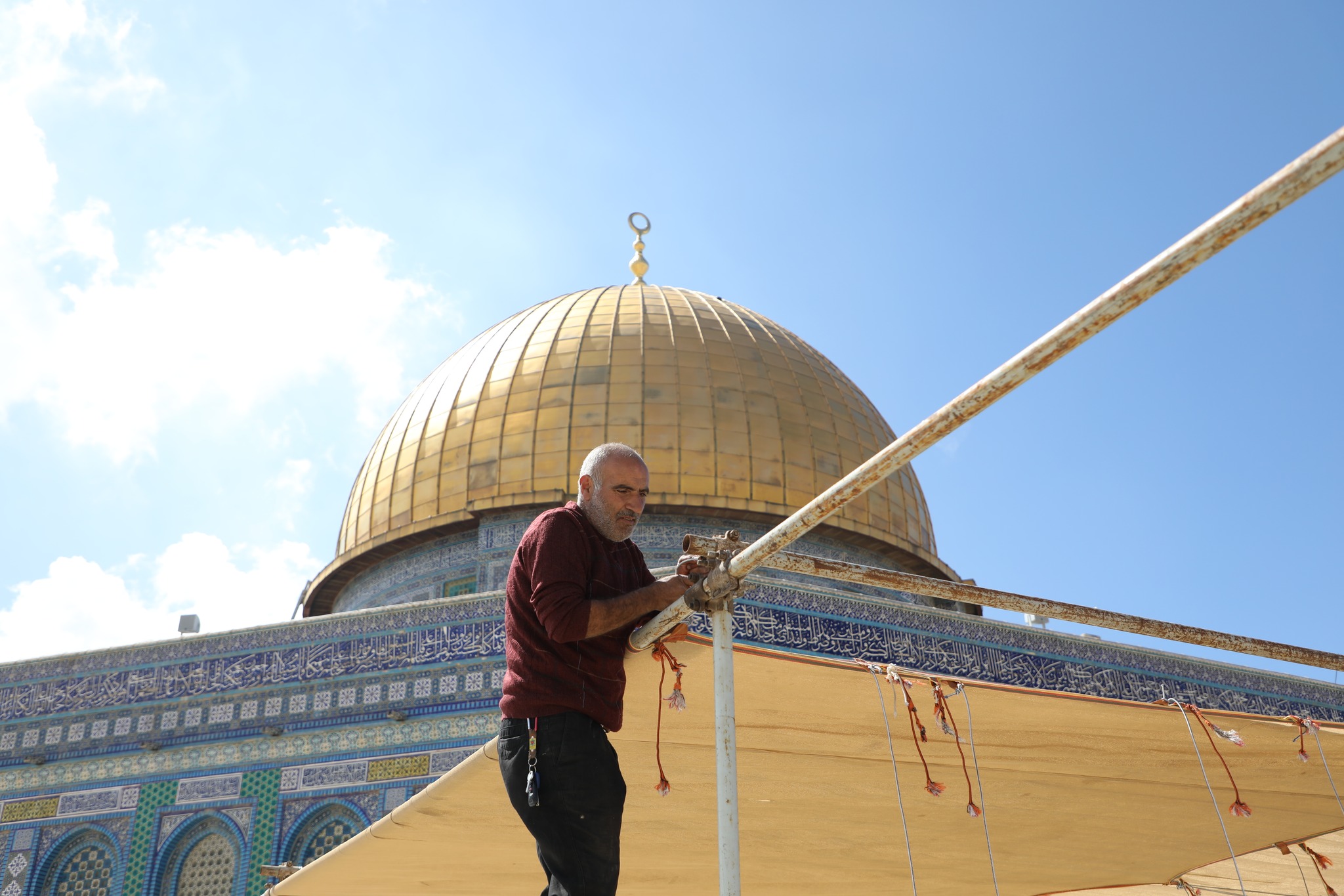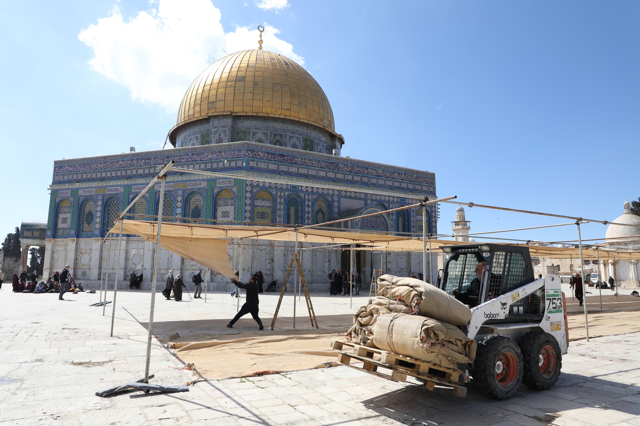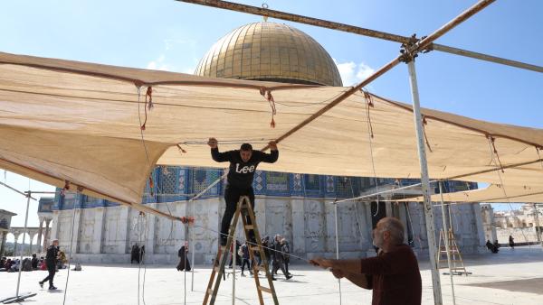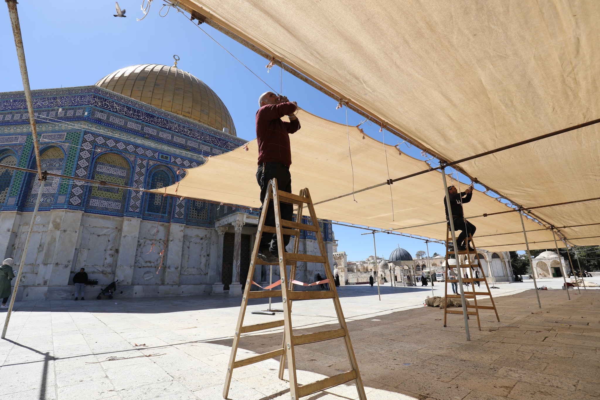 لجنة الإعمار تنصُب المظلات استعداداً لاستقبال الشهر الفضيل - 16.3.2023