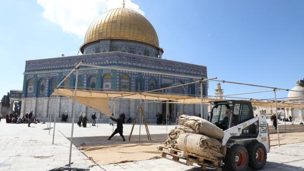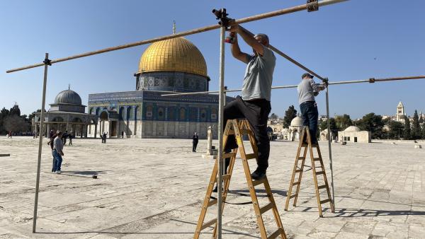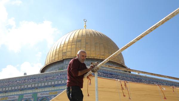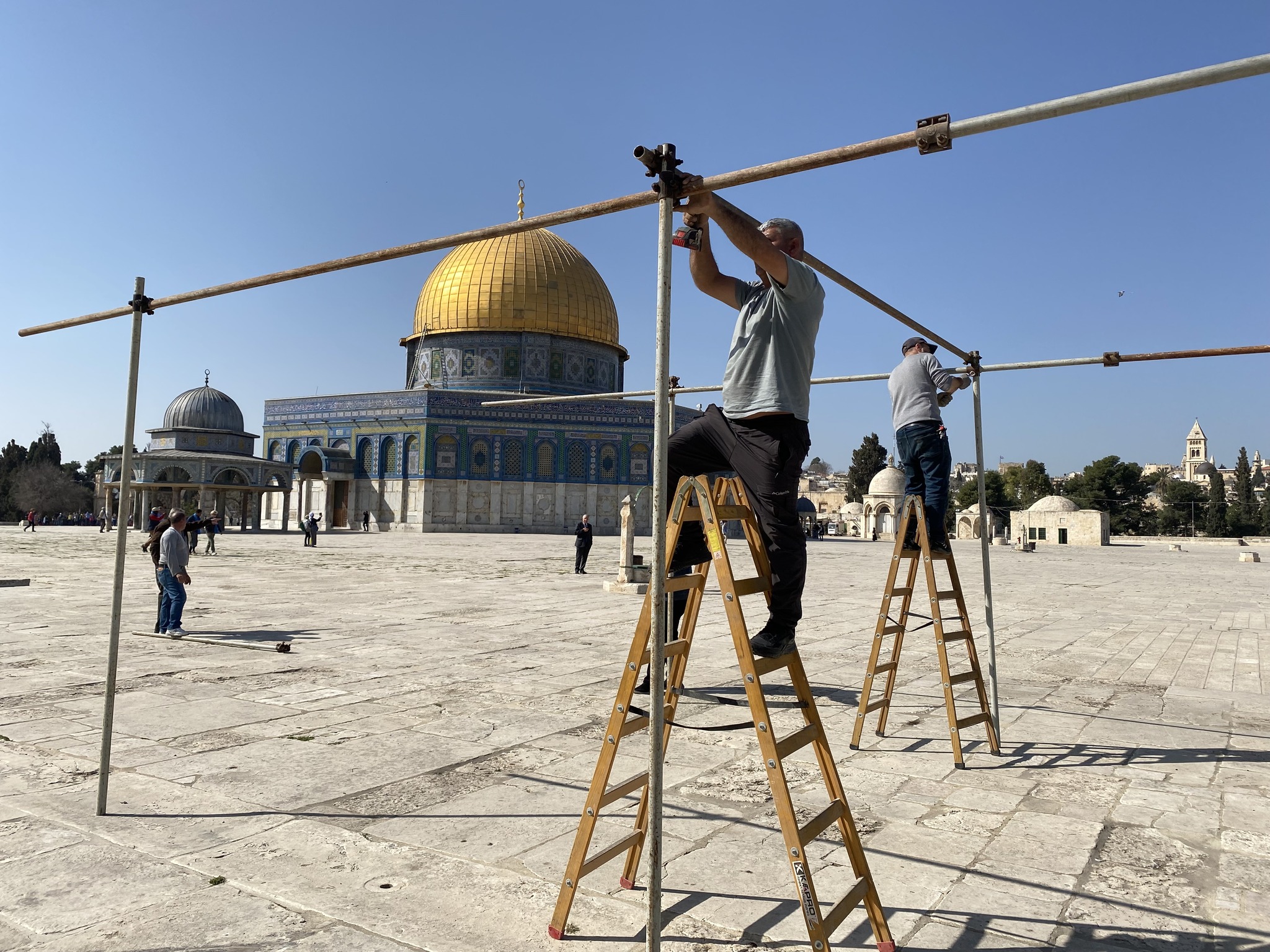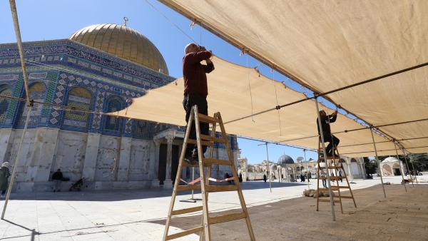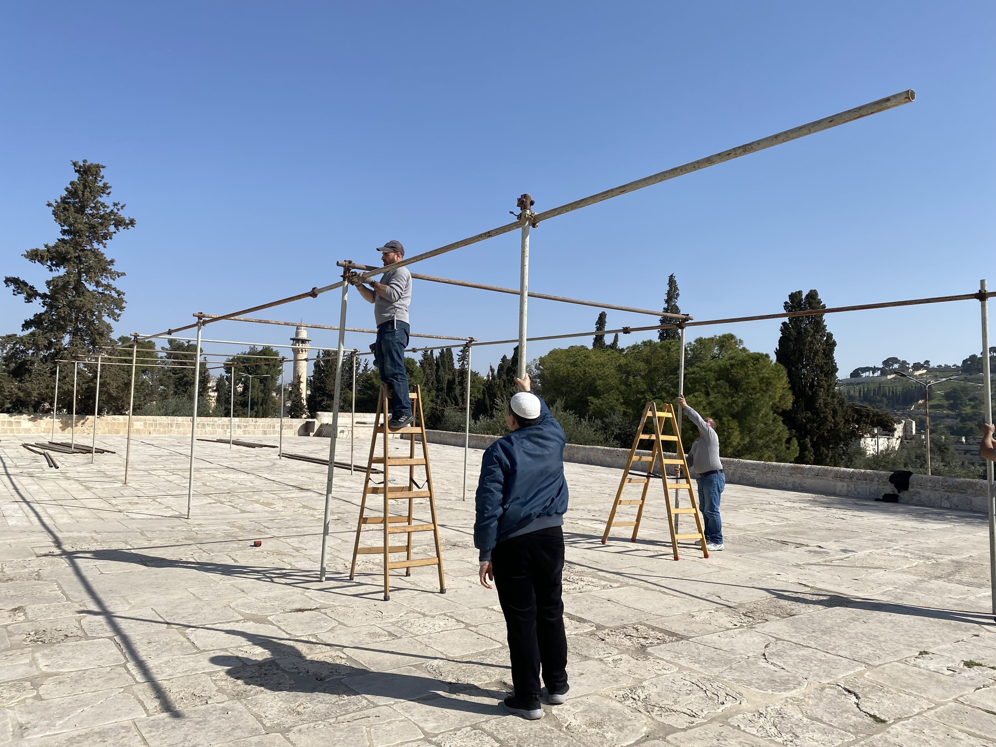 لجنة الإعمار تنصُب المظلات استعداداً لاستقبال الشهر الفضيل - 16.3.2023